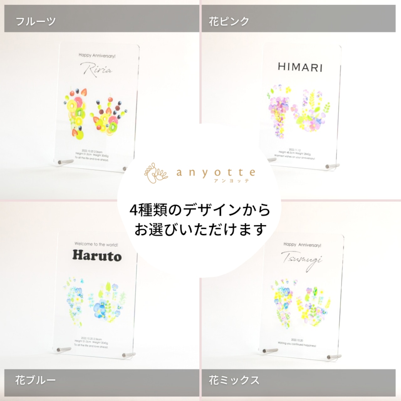 また手形足形のデザインやフォント(名前のみ)なども選べ、こだわりの詰まった世界に1つだけの作品が作れます。